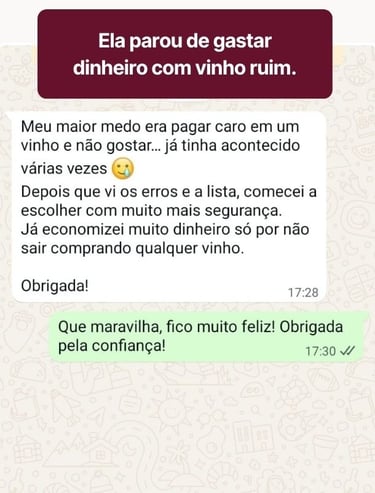 Veja abaixo resultados reais de quem usa o Escolhendo Meu Vinho Sem Erro